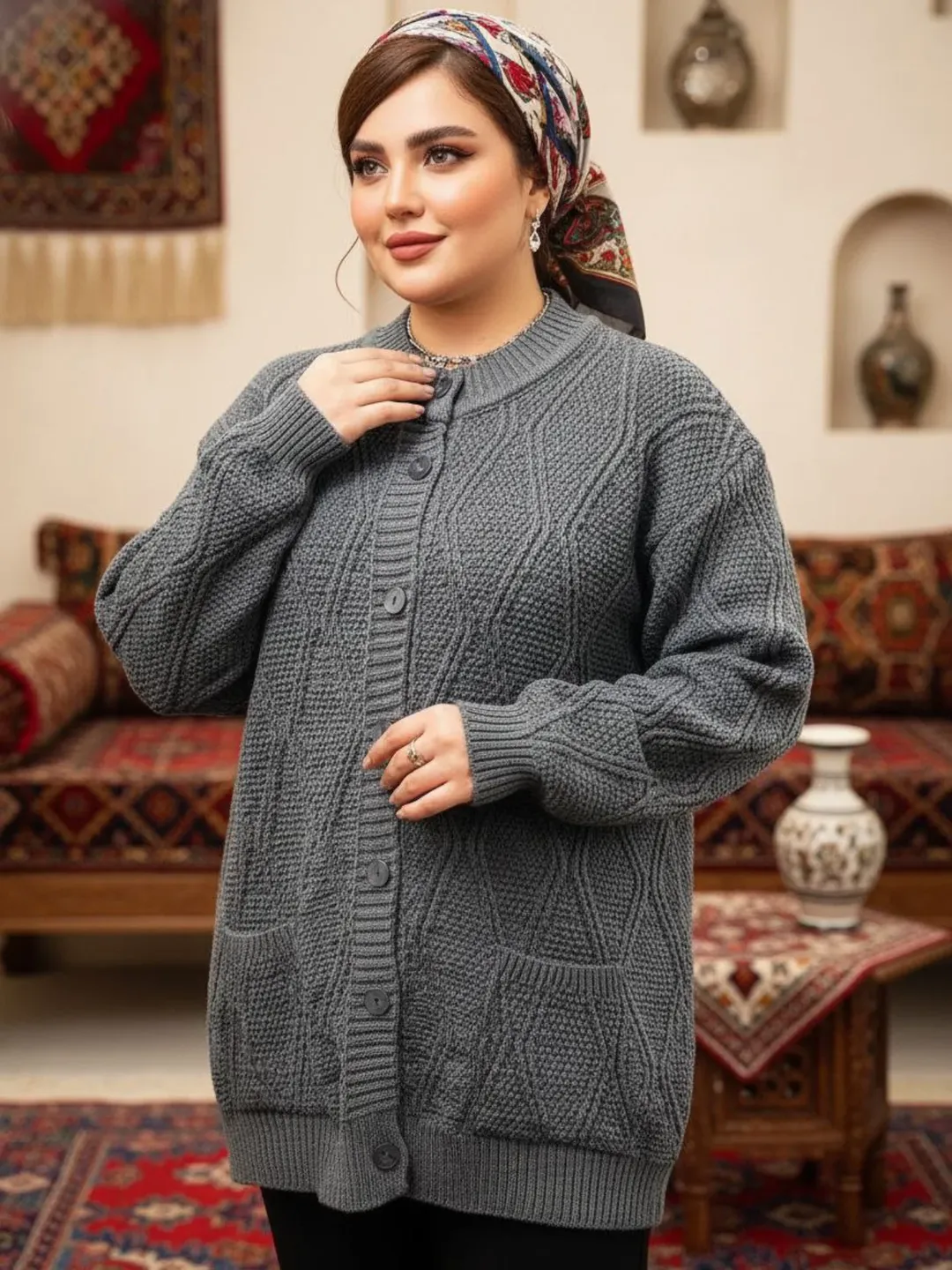ژاکت زنانه سایز بزرگ طرح لوزی