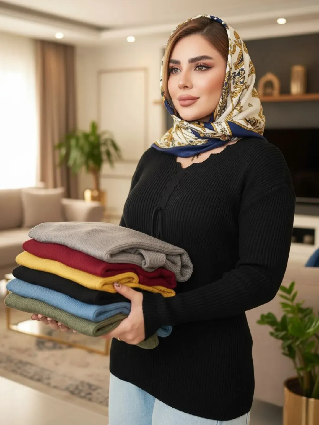 پلیور زنانه با جنس نخ بافتنی اکرولیک و سایز مناسب ۴۶.