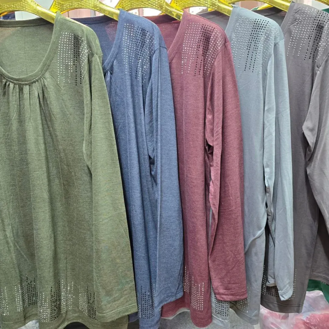 بلوز یقه چین نگین دار پارچه سافت با سایز فری تا ۵۲
